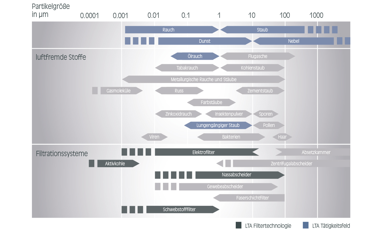 Viren, Bakterien, Pollen und andere Keime befinden sich auf Oberflächen und in der Luft. Besonders in geschlossenen Räumen kann die Konzentration sehr hoch sein. Filtrationssysteme tragen dazu bei, die Konzentration dieser gesundheitsschädlichen Stoffe in der Raumluft entscheidend zu verringern. Zusätzlich werden auch weiteren Schadstoffe wie Pollen und Sporen aus der Luft gefiltert. Viren haben beispielsweise eine Größe von 0,05 bis 0,12 µm.